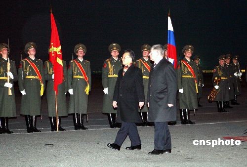 溫家寶在機(jī)場(chǎng)受到俄副外長(zhǎng)博羅達(dá)夫金等俄方官員的熱情迎接并出席了歡迎儀式。