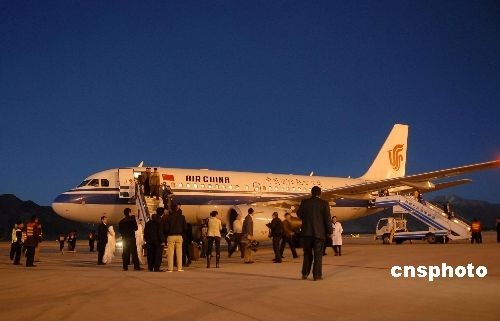 11月12日19時22分,國航成都至拉薩的夜航CA4406航班平穩地降落在拉薩貢嘎機場,并于當日21時42分將拉薩至成都的102名旅客順利送達成都雙流機場,這標志著拉薩夜航航班首航成功,此舉也結束了43年來拉薩貢嘎機場無夜航的歷史。 中新社發 龍昊 攝