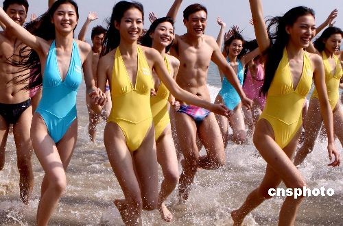 11月30日,2008新絲路中國模特大賽總決賽在海南三亞拉開帷幕,是次參賽的選手年齡最小為16歲,最大的選手為24歲。新絲路中國模特大賽至今已經成功舉辦15屆。圖為參賽佳麗在三亞泳裝展示風采。中新社發 錢興強 攝