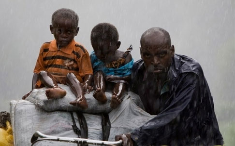 2008年11月2日,剛果民主共和國難民離開基巴提逃亡至北基伍省省會戈馬北部的村莊基布姆巴和魯加里。