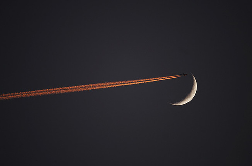 一輪彎月“飛往”洛杉磯。
