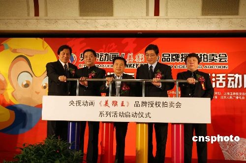 12月29日,《美猴王》品牌授權(quán)拍賣會(huì)啟動(dòng)儀式在北京舉行。該活動(dòng)是央視動(dòng)畫2009年動(dòng)漫主題營銷活動(dòng)的開篇之作。除此之外,另有15部動(dòng)畫精品,在國內(nèi)甚至國際行業(yè)內(nèi)首次以拍賣形式出售版權(quán),旨在搭建中國動(dòng)漫營銷第一平臺(tái),締造新興動(dòng)漫產(chǎn)業(yè)模式。中新社發(fā) 任海霞 攝