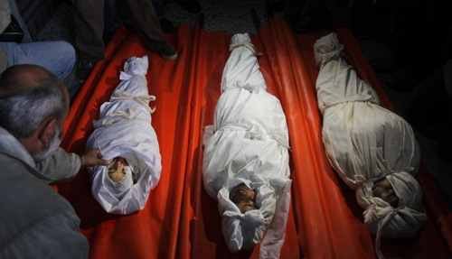 12月29日,加沙南部的拉法難民營,三名巴勒斯坦兄弟被以色列的導彈炸死。