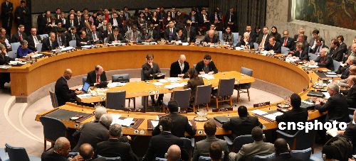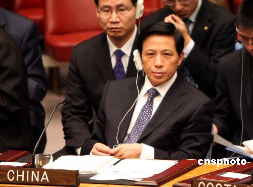 聯合國安理會1月6日就加沙局勢舉行緊急會議。中國常駐聯合國代表張業遂在會上發言,呼吁安理會盡快行動,通過一項決議,促成以巴立即停火。包括巴勒斯坦民族權力機構主席阿巴斯、美國國務卿賴斯、英國外相米利班德,以及沙特、埃及、約旦、黎巴嫩、摩洛哥、卡塔爾、敘利亞等阿拉伯國家外長和安理會理事國常駐聯合國代表都出席會議。中新社發 李靜 攝