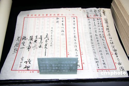 1月7日,中國國民黨中央黨部黨史展覽廳在此間推出“跨越三世紀——中國國民黨的變與不變”展覽,展出許多珍貴史料,包括周恩來的手稿。圖為1946年,周恩來為新華日報營業部遭搗毀事,致函當時的國民政府主席蔣介石的手稿。中新社發 陳立宇 攝