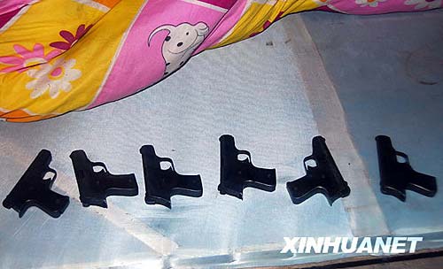 這是在一名制槍嫌疑人家中床單下發現的仿制手槍。劉潺 攝