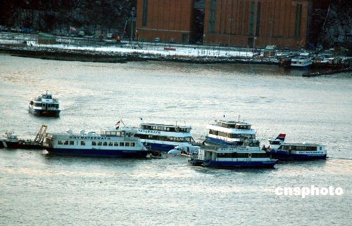1月15日,在美國紐約的哈德遜河上,救援人員對墜河飛機上的乘客實施營救。中新社發 魏晞 攝