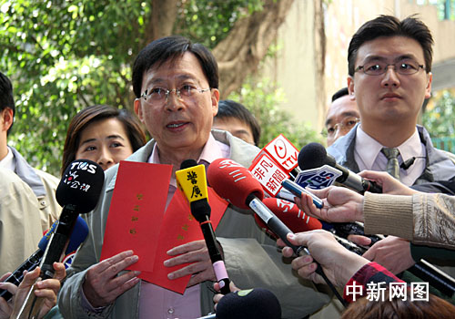 1月18日上午,備受全臺和外界關(guān)注的消費券開始在臺灣各發(fā)放所發(fā)放。圖為今天上午11時,臺灣行政部門負責(zé)人劉兆玄來到設(shè)于臺北市金華中學(xué)的消費券發(fā)放所領(lǐng)取消費券。劉兆玄隨后發(fā)表講話呼吁臺灣民眾積極使用消費券擴大消費,促進內(nèi)需。陳立宇 攝