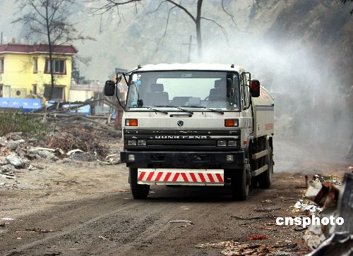 圖:四川映秀鎮依舊被封鎖消毒防疫