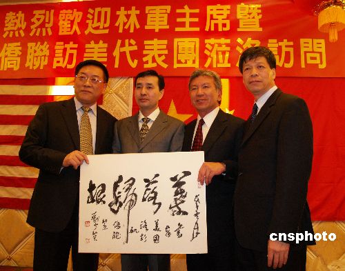 1月19日,美國南加州一百多華人僑團600多名華人代表,在洛杉磯歡迎中國僑聯主席林軍率中國藝術團訪美,中國駐洛杉磯總領館副總領事黃曉健、洛杉磯僑領程遠、張素久、張作波等出席歡迎宴。中新社發 盧威 攝