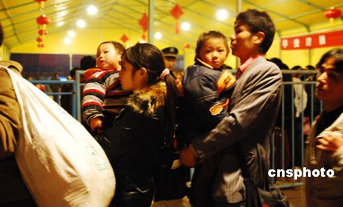 1月30日,江西九江火車站迎來返程農民工客流高峰。據了解,全天發送旅客同比增長31%。中新社發 胡國林 攝