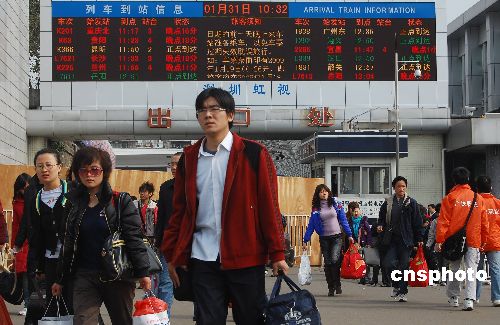 隨著春節長假臨近結束,廣州火車站出站口人流開始明顯增多,外來工和大學生畢業生紛紛提前返粵找工。中新社發 柯小軍 攝