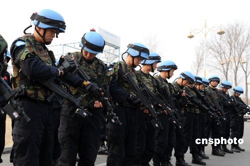 維和防暴隊員進行激光模擬戰(zhàn)斗前準備。中新社發(fā) 由永懷 攝