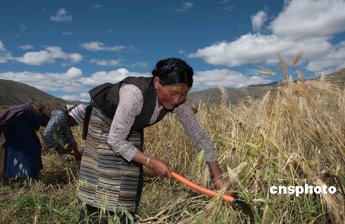 西藏高原上的金色收獲。中新社發 扎西朗杰 攝