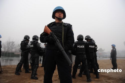 圖:中國赴海地維和警察防暴隊冒雨訓練(5)