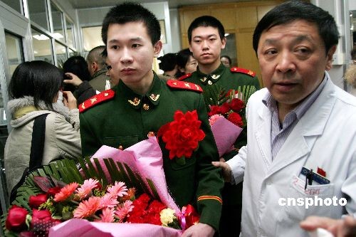 2月17日,在撲救2月9日晚央視新址北配樓大火中受傷的5名消防官兵,在北京朝陽醫(yī)院的救治下康復(fù)出院,醫(yī)院醫(yī)護人員舉行了簡短而隆重的歡送儀式,為消防官兵送上祝福。目前,因吸入有毒有害、高溫氣體造成肺部嚴重損傷的消防中隊長張少輝仍需留院觀察。