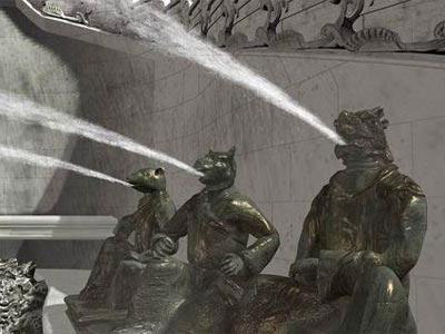 海晏堂由正樓和后工字蓄水樓組成,是最大的一處歐式園林景觀。海晏堂正樓朝西,上下各十一間,樓門左右有疊落式噴水槽,階下為一大型噴水池,池左右呈"八"字形排列著我國(guó)十二生肖人身獸頭銅像。每晝夜十二個(gè)時(shí)辰,由十二生肖依次輪流噴水,俗稱"水力鐘"。