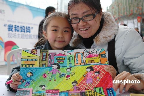 2009年3月7日,由近1500余名小朋友參與的“我和媽媽”主題繪畫大賽在蘇州工業園區圓融廣場舉行。孩子們發揮自己豐富的想象力,畫出自己心目中的媽媽,為慶!叭恕眿D女節獻上他們的一份愛。 中新社發 朱子寒 攝