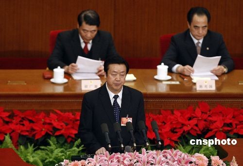 3月10日,第十一屆全國人民代表大會第二次會議在北京人民大會堂舉行第三次全體會議,最高人民法院院長王勝俊在向大會作工作報告時指出,要嚴懲重大安全責任事故、制售偽劣食品藥品。中新社發 盛佳鵬 攝