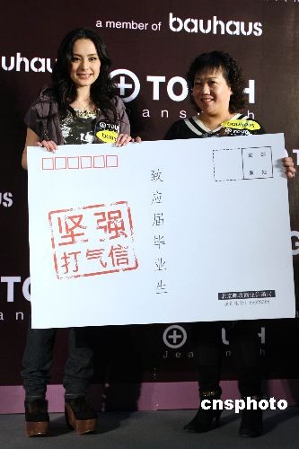 2009年3月21日,香港歌星阿嬌在北京西單大悅城為其代言的牛仔品牌做最后一站巡回宣傳。阿嬌在活動(dòng)中表示很遺憾沒能到北京看奧運(yùn)會(huì),但這次接下復(fù)出后第一份工作并在北京看到支持的歌迷讓她感受到了生活的快樂和堅(jiān)強(qiáng)的意義。中新社發(fā) 袁方 攝