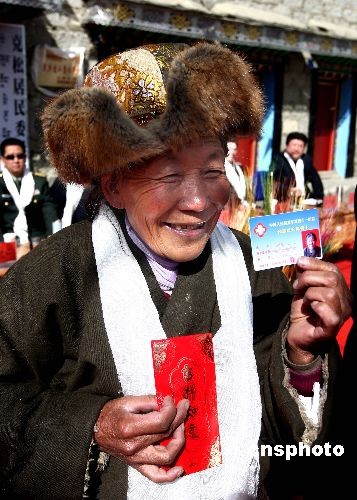 3月24日,在“西藏百萬農奴解放紀念日”即將來臨時,作為西藏民主改革第一村的西藏山南地區乃東縣昌珠鎮克松村與西藏山南軍分區某部一起舉行“軍民共建小康示范村”揭牌儀式,此后,克松村民的基礎設施建設、教育、醫療等各方面都將得到解放軍更多的幫助。揭牌儀式上,15戶貧困村民得到了免費醫療卡,300多人得到了醫療優惠卡,生病的村民將在離村子僅5公里的解放軍41醫院得到最好的治療。中新社發 杜洋 攝