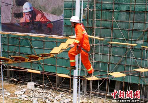 隨著消防部隊承擔社會救助范圍的不斷擴大,滅火救援、搶險救災和處置突發事件的復雜性及不可確定性因素不斷增加,加強心理拓展訓練,成為消防部隊一項緊迫而又新型的課題。 (唐海波 攝)
