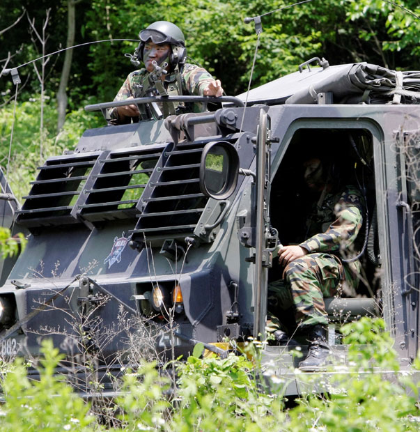 2009年6月18日,韓國陸軍在江原道江陵市海岸一帶舉行防范入侵的海岸哨所軍事演習。