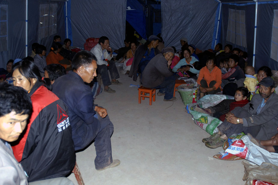 圖為受災最為嚴重的官屯鄉官屯村災民,在當地官屯小學搭建的臨時安置點渡過震后的第一夜。中新社發 保旭 攝