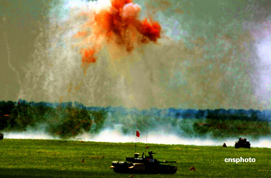 中國、俄羅斯兩軍總參謀長,7月23日上午到沈陽軍區(qū)洮南合同戰(zhàn)術(shù)訓(xùn)練基地,觀看“和平使命2009”聯(lián)合反恐軍事演習(xí)。雙方以陸軍和空軍為主,中方參演部隊包括1個陸軍戰(zhàn)斗群和1個空軍戰(zhàn)斗群。俄方參演兵力包括1個陸軍加強摩步營、1個空降突擊連和部分空軍兵力,雙方投入兵力兩千多人。中新社發(fā) 宋吉河 攝