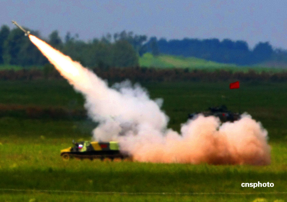 中國(guó)、俄羅斯兩軍總參謀長(zhǎng),7月23日上午到沈陽軍區(qū)洮南合同戰(zhàn)術(shù)訓(xùn)練基地,觀看“和平使命2009”聯(lián)合反恐軍事演習(xí)。雙方以陸軍和空軍為主,中方參演部隊(duì)包括1個(gè)陸軍戰(zhàn)斗群和1個(gè)空軍戰(zhàn)斗群。俄方參演兵力包括1個(gè)陸軍加強(qiáng)摩步營(yíng)、1個(gè)空降突擊連和部分空軍兵力,雙方投入兵力兩千多人。中新社發(fā) 宋吉河 攝