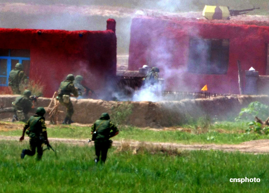 中國、俄羅斯兩軍總參謀長,7月23日上午到沈陽軍區(qū)洮南合同戰(zhàn)術(shù)訓(xùn)練基地,觀看“和平使命2009”聯(lián)合反恐軍事演習(xí)。