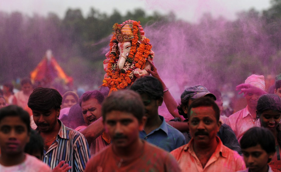 9月3日,印度各地的印度教教徒舉行盛大的儀式慶祝象頭神節。象頭神節是印度重要的宗教節日之一。圖片來源:中國新聞網
