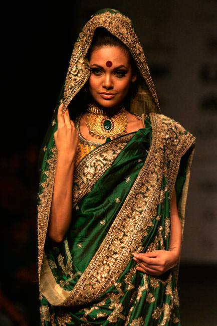 9月13日,主題名為“地球時裝”的時裝周在印度加爾各答開幕,時裝周上模特們展示了設計師馬尼什·馬爾霍特拉的作品。來源:中國新聞網