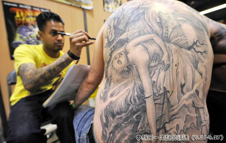 法國巴黎9月20日舉行“紋身藝術節(jié)”,吸引了成百上千紋身藝術大師到場獻藝。圖片來源:中國新聞網(wǎng)