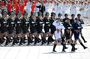 國慶60周年閱兵10月1日上午在天安門廣場成功舉行。由人民解放軍、武裝警察部隊和民兵預備役部隊8000余名官兵組成的受閱方陣接受檢閱。 點擊觀看更多