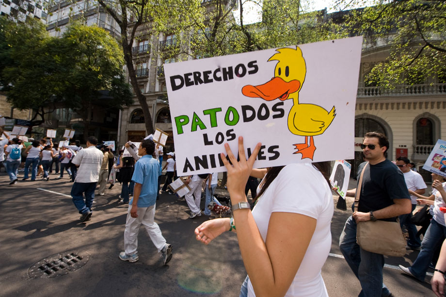 10月4日,在墨西哥首都墨西哥城,參加世界動(dòng)物日活動(dòng)的人們頭帶面具,手舉圖片,呼吁人們關(guān)注動(dòng)物權(quán)益。來源:中國新聞網(wǎng)