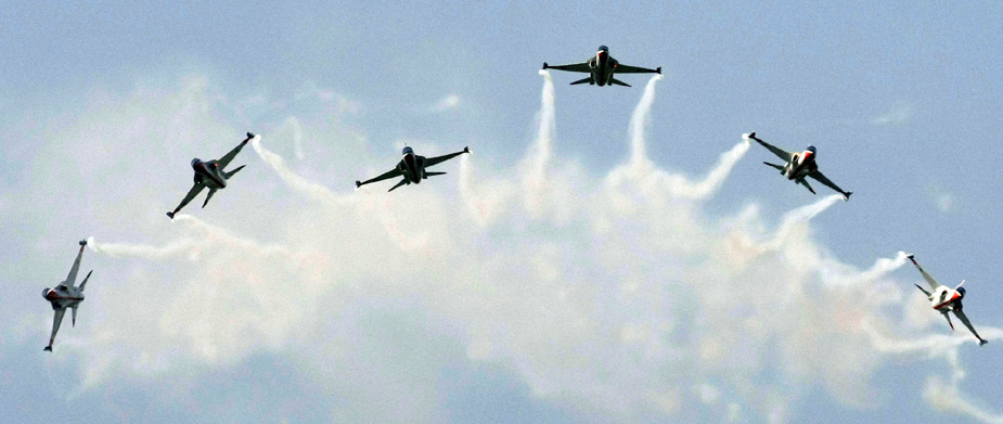 10月20日,韓國黑鷹特技飛行表演隊在2009首爾國際航空航天與國防展上進行精彩的特技飛行表演。
