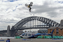 男子騎摩托飛越直升機(jī)