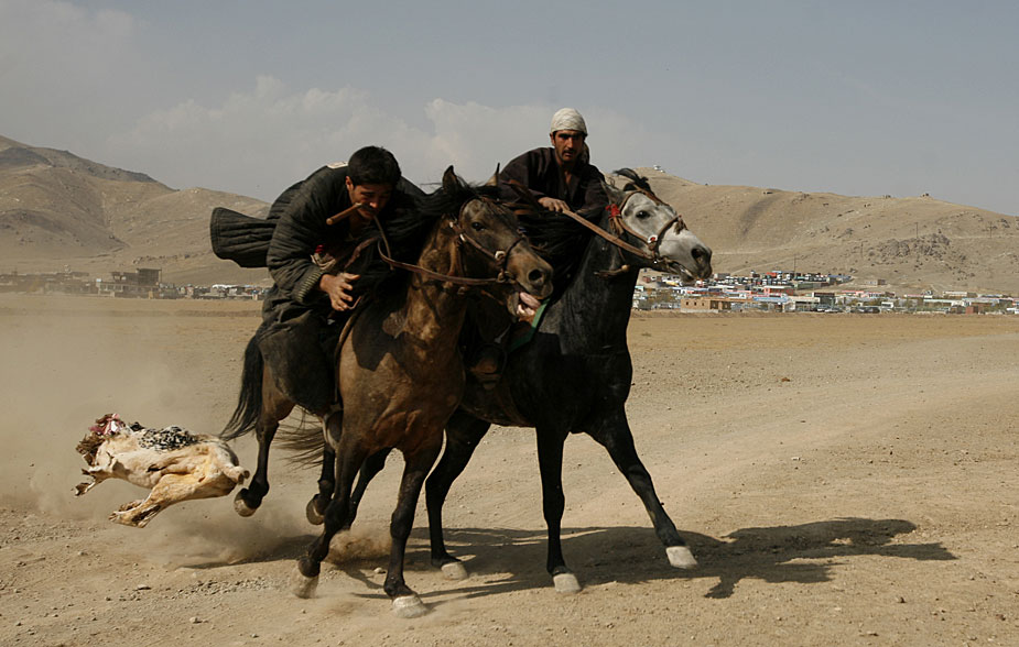 11月6日,阿富汗首都喀布爾舉行傳統的“馬背叼羊”比賽。圖片來源:中國新聞網