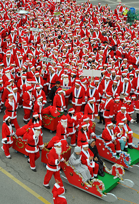 12月1日,韓國首都首爾市,一千多名“圣誕老人”舉行游行為社會慈善項目籌款。圖片來源:中國新聞網
