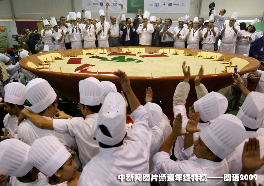 世界最重豆沙餅:10月14日,黎巴嫩廚師制作出2056公斤巨型豆沙餅,打破了世界吉尼斯紀錄。圖片來源:中國新聞網
