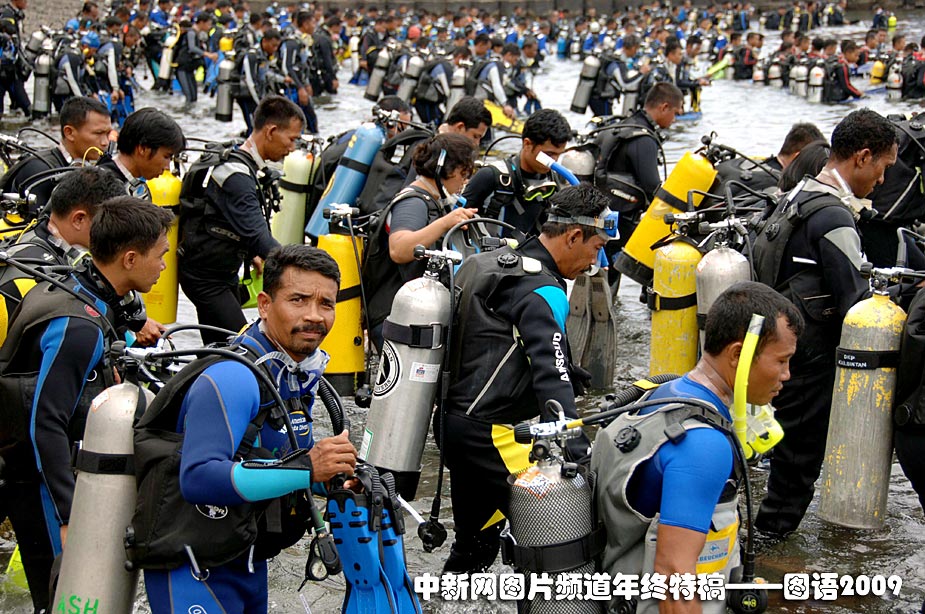 同時潛水最多人:8月16日,印尼2468名潛水員同時潛入水下,這一壯舉創造了一個新的吉尼斯世界紀錄。圖片來源:中國新聞網