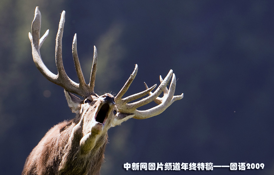 奧地利蒂羅爾州的一個野生動物園內,一只發情的雄鹿在嘶吼。