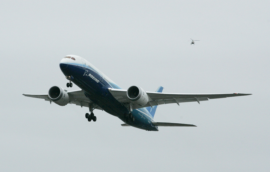 當(dāng)?shù)貢r(shí)間15日上午10時(shí),華盛頓州埃佛瑞特潘恩機(jī)場(chǎng),兩名飛行員邁克爾•卡瑞克爾和蘭多爾•內(nèi)維勒駕駛的波音787飛機(jī)順利升空,在飛行了大約四個(gè)多小時(shí)后返回地面。