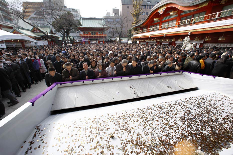 日本商人新年聚集神社求財運