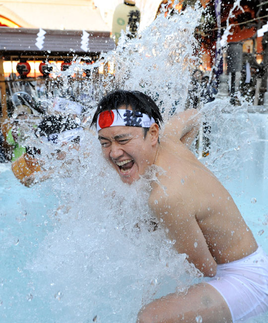 1月9日,日本東京,眾多日本民眾參加傳統的凈化儀式,他們用冷水澆身,祈禱身體和靈魂得到凈化。圖片來源:中國新網網