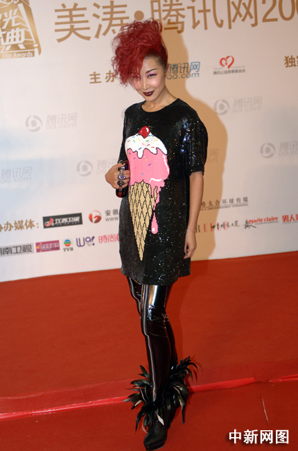 圖為孫悅紅發造型走秀引尖叫。中新網記者 金碩 攝