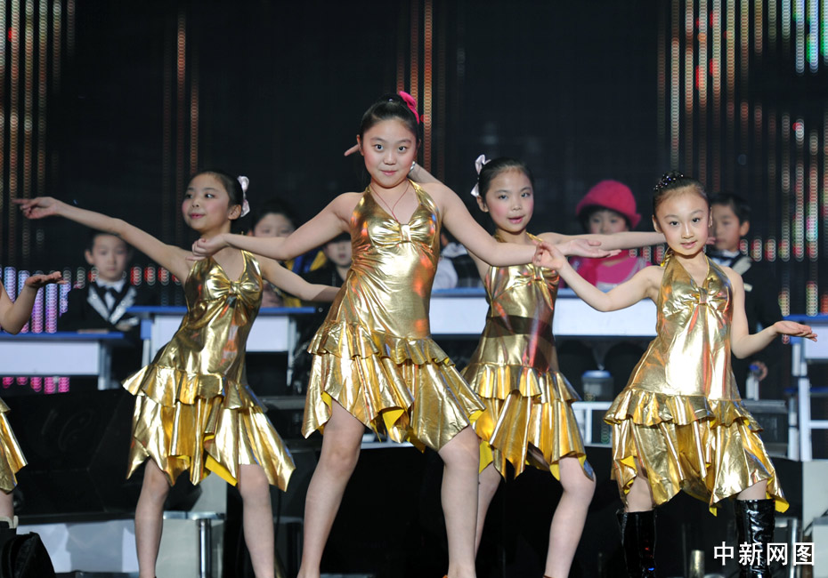 1月11日晚,第二屆音樂風云榜新人盛典在京舉行,盛典現場的音樂課上,兒童版的Wonder Girl、Super Junior、邁克爾·杰克遜、曾軼可、大張偉紛紛登臺獻藝,讓現場觀眾們笑聲不斷。中新網記者 金碩 攝