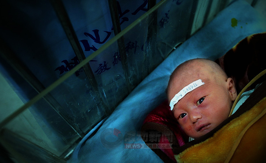 1月15日,湖南省兒童醫院,小振和躺在醫院新生兒的小床上,偶爾哇哇大哭,偶爾睜開雙眼,驚恐地打量著這個陌生的世界。瀟湘晨報 記者 楊抒懷 攝