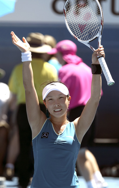 在26日上午進行的澳大利亞網球公開賽中,鄭潔直落兩盤橫掃俄羅斯好手基里連科躋身四強,刷新了個人澳網最佳紀錄。 圖片來源:中國新聞網